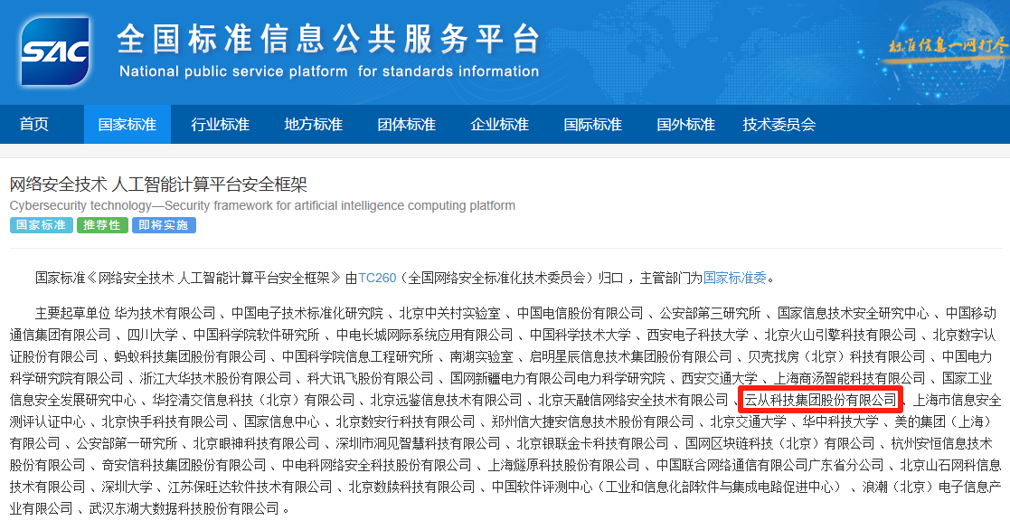 近日,國(guó)家標(biāo)準(zhǔn)GB/T 45958-2025《網(wǎng)絡(luò)安全技術(shù) 人工智能計(jì)算平臺(tái)安全框架》正式發(fā)布。該標(biāo)準(zhǔn)由全國(guó)網(wǎng)絡(luò)安全標(biāo)準(zhǔn)化技術(shù)委員會(huì)歸口管理,華為技術(shù)有限公司牽頭,云從科技作為核心起草單位之一,深度參與了標(biāo)準(zhǔn)制定工作。 這項(xiàng)將于2026年2月1日正式實(shí)施的國(guó)家標(biāo)準(zhǔn),為人工智能計(jì)算平臺(tái)建立了系統(tǒng)化的安全框架,規(guī)定了安全功能、安全管理和角色安全職責(zé),將有效應(yīng)對(duì)硬件漏洞、訓(xùn)練數(shù)據(jù)泄露、對(duì)抗樣本攻擊等新型安全威脅。